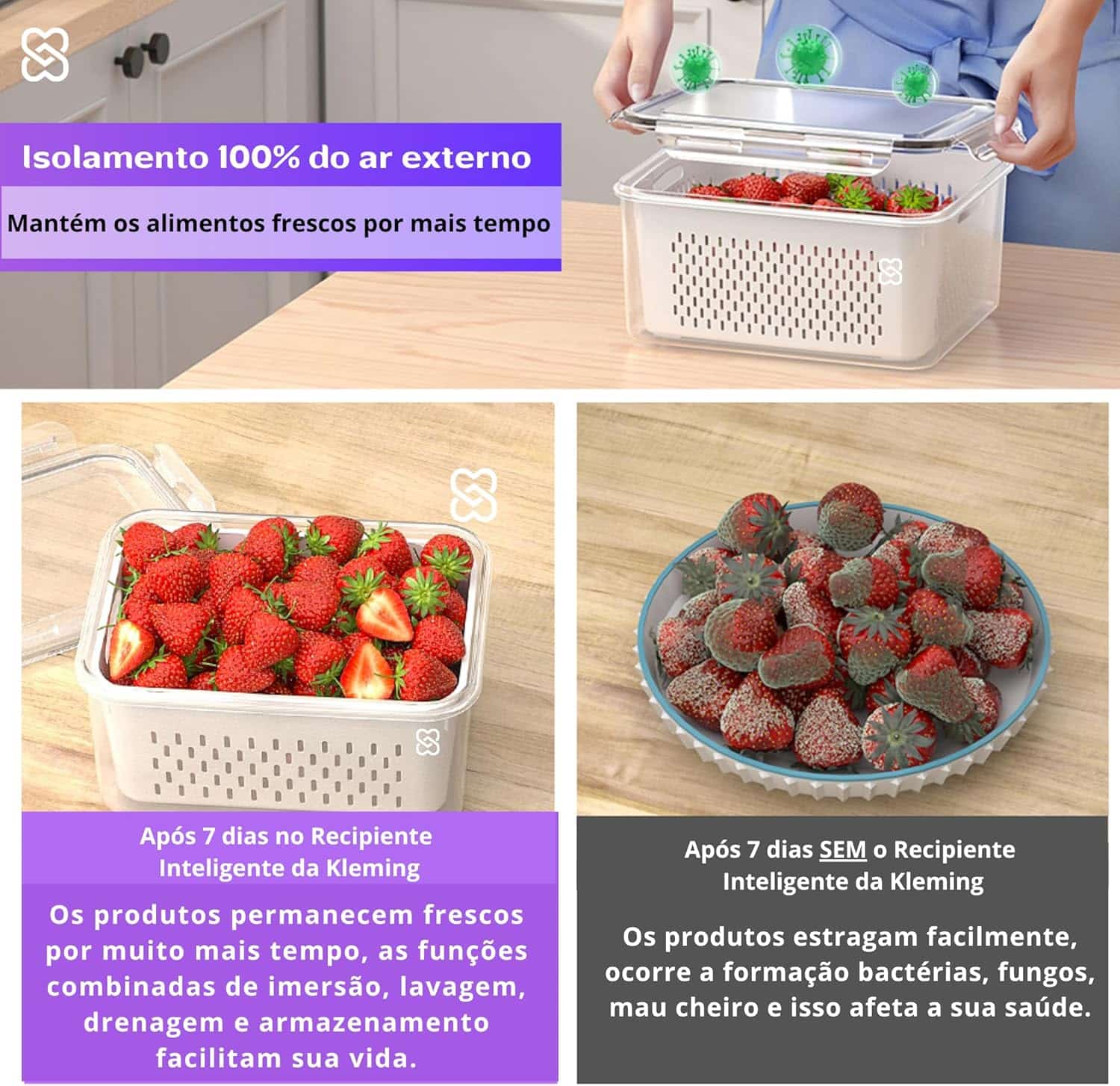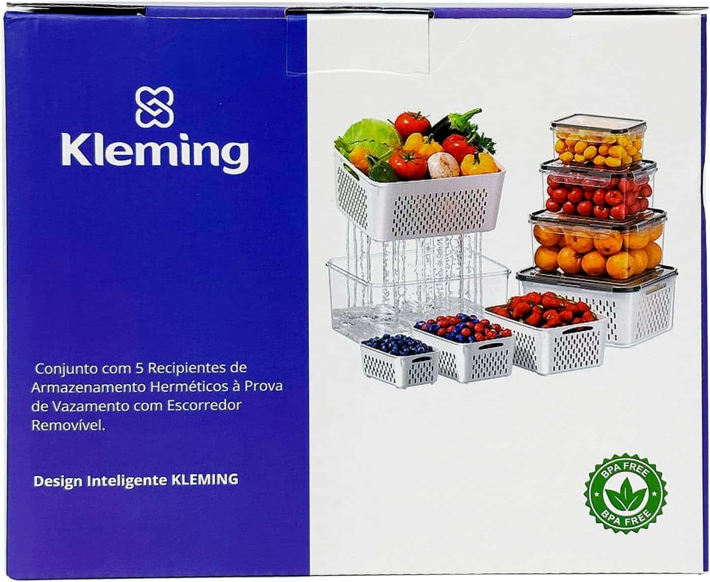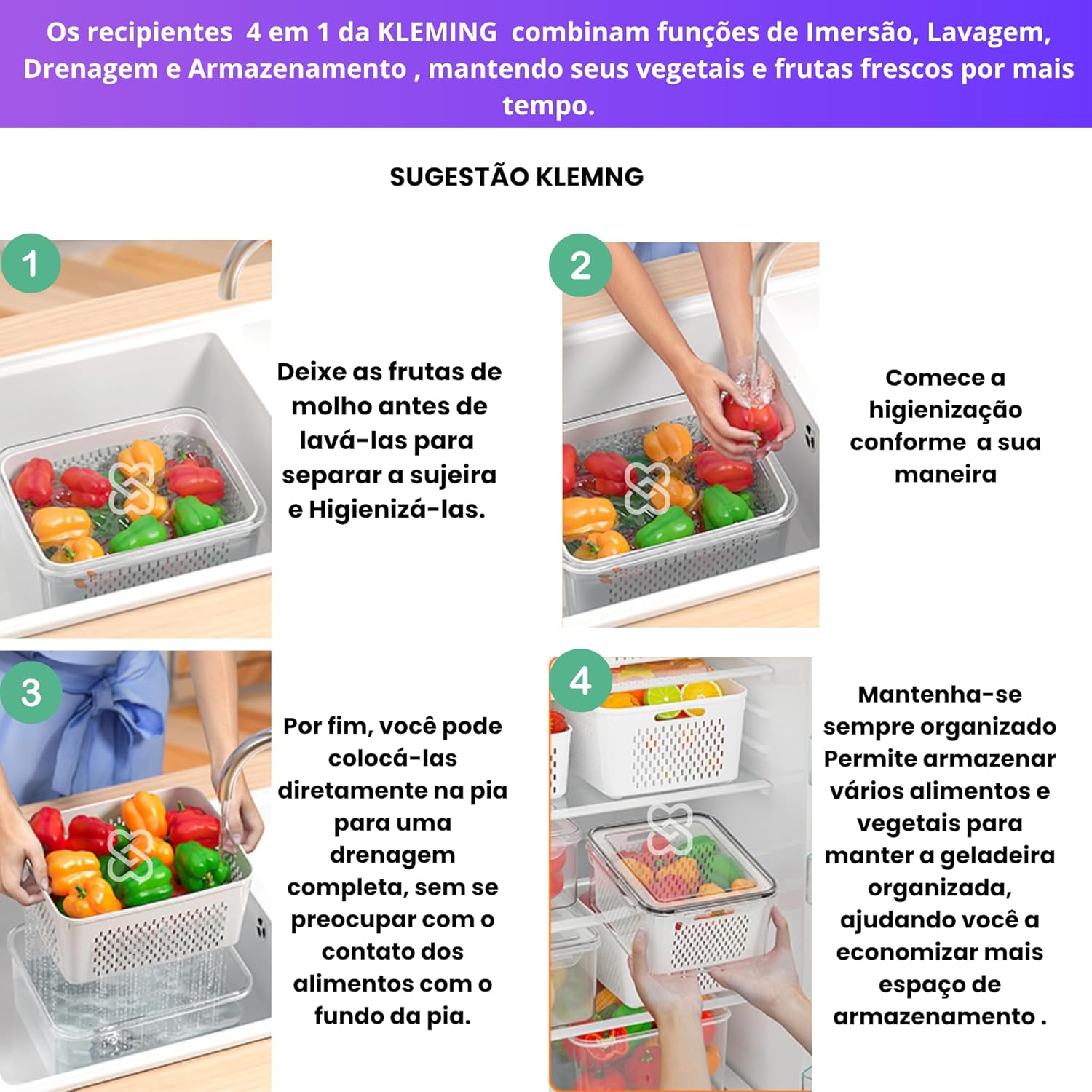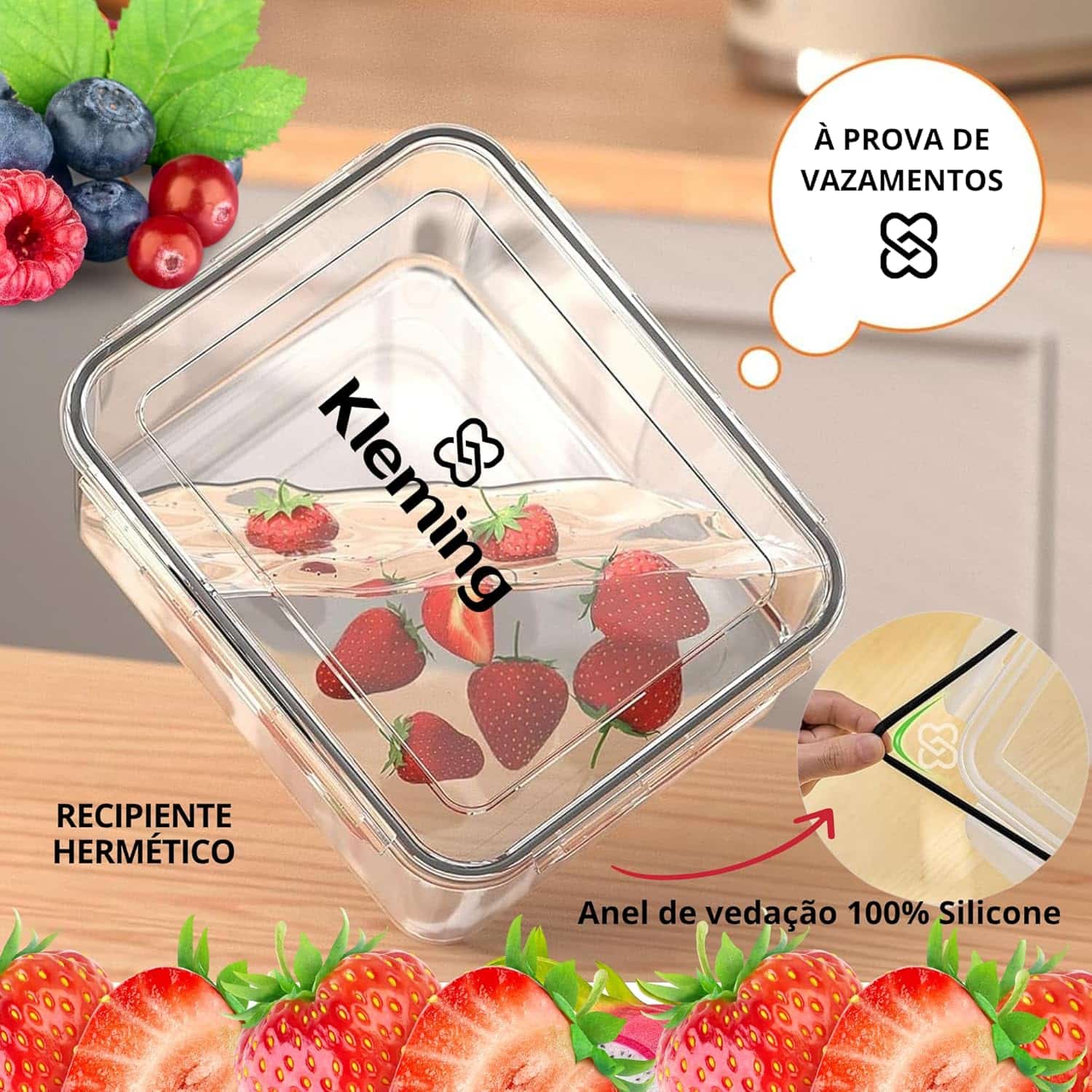 Kit 5 Organizadores de Geladeira, Hermético,com Escorredor,Cesto Removível, à prova de vazamento, OU Organizador Clear Fresh, Organizador de Geladeira,Armário,Cesto Organizador